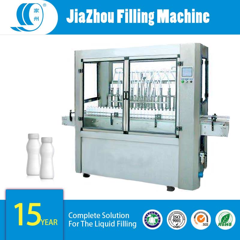 牛奶灌裝生產(chǎn)線設(shè)備灌裝物料時具有防滴漏,防腐蝕,防拉絲及升降灌裝裝置等特性。該灌裝機(jī)機(jī)身均采用不銹鋼制